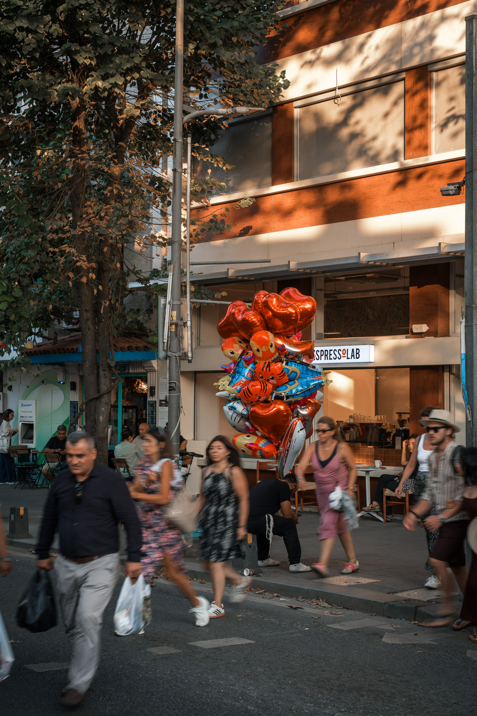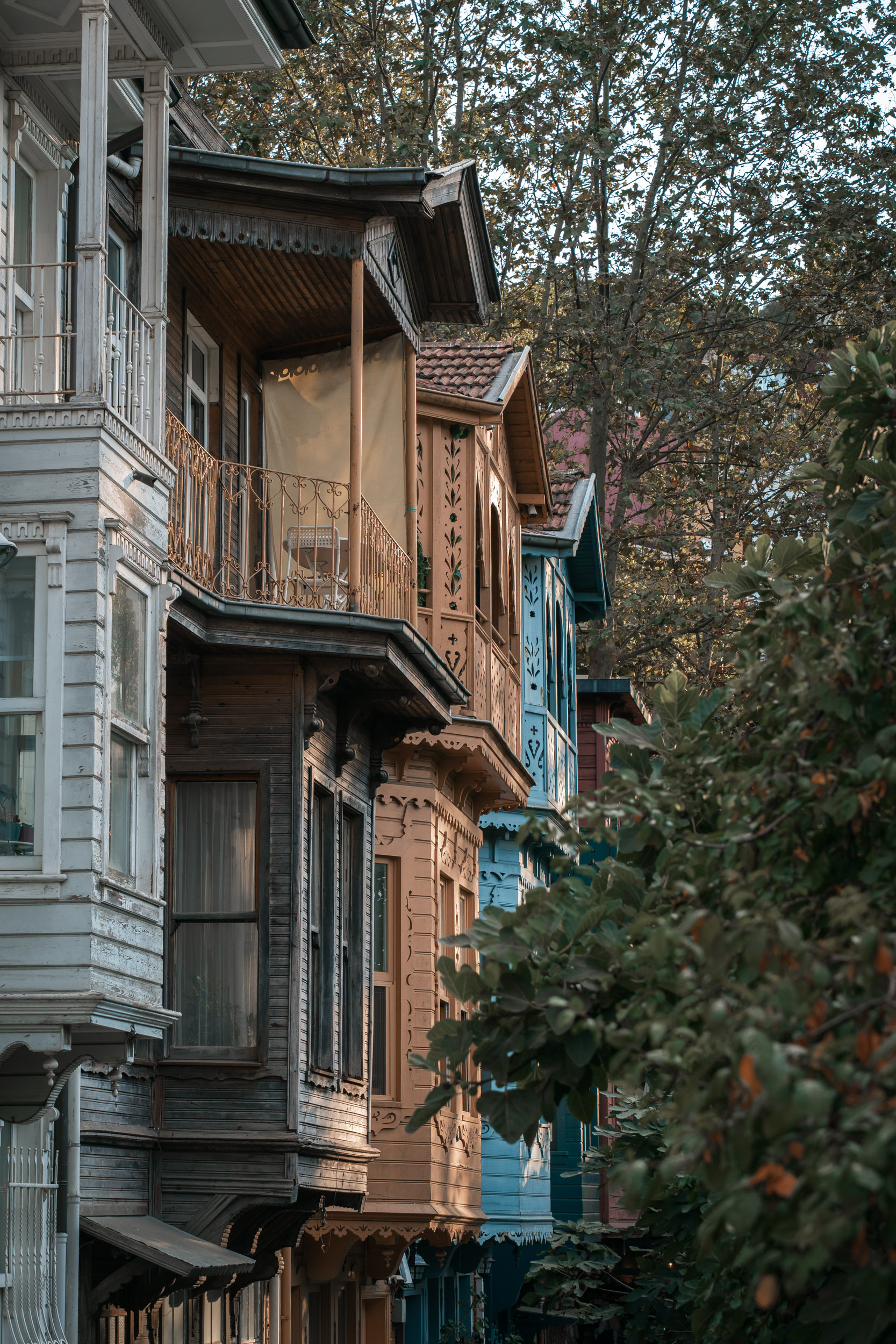 Cihangir offers a slightly different vibe: crooked streets, old houses with character, and hidden cafés perfect for street photography. Morning light creates soft shadows along the alleys, while evening brings warm tones to the façades and intimate terraces.