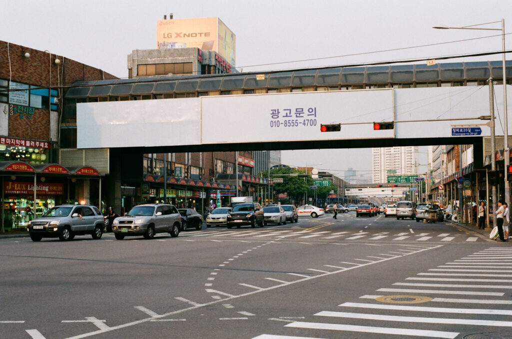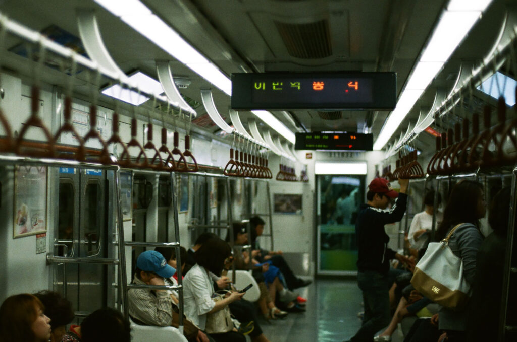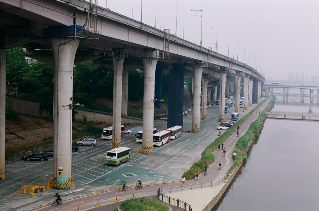 Seoul has a pretty cool infrastructure. Coming from The Netherlands it was really impressive to see so many lanes above each other. Of course I was happy to see that the urban planners had also thought of a cycling lane along the river. The 50mm 1.4 lens of my new analog camera was also great to use in low light conditions, like Seoul’s metro system.