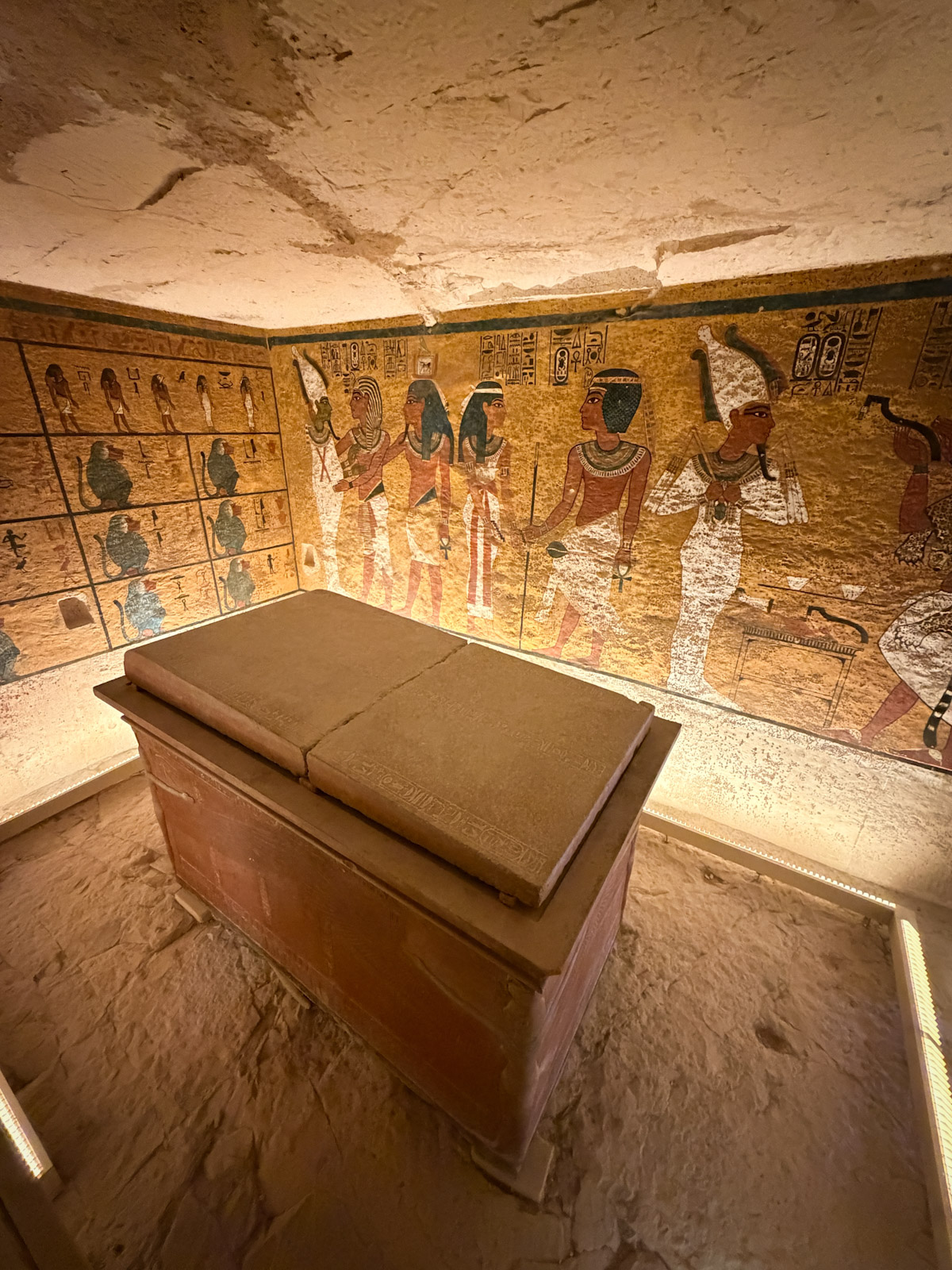 Today, only the mummy of Tutankhamun still rests inside of the tomb, in a glass case. All the treasures have now been moved to the newly opened Grand Egyptian Museum (GEM) in Cairo, which we were planning to visit a few days later.